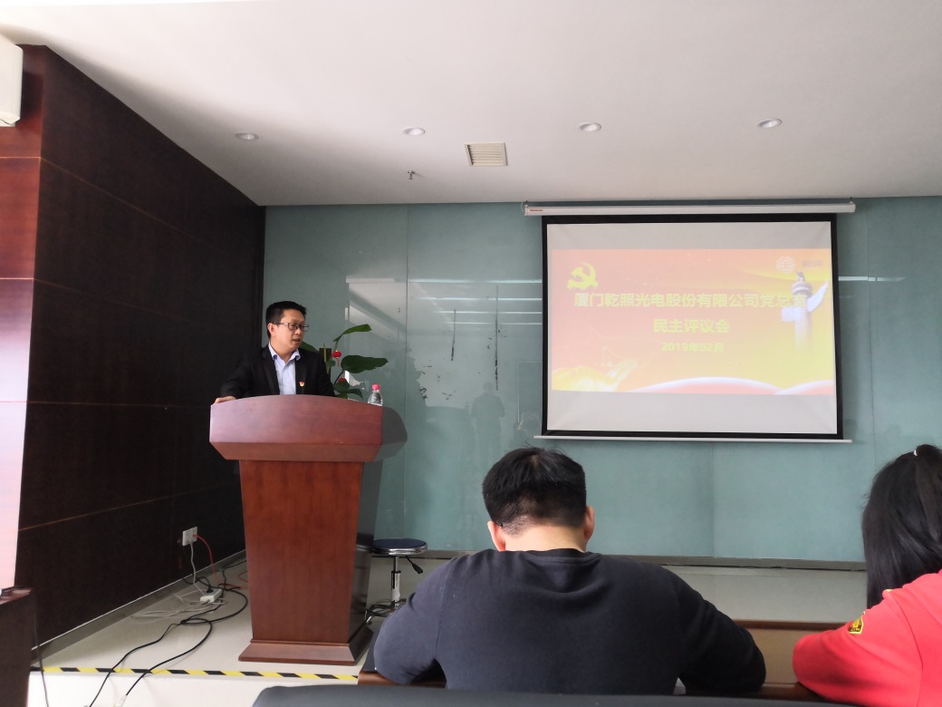 按照上級黨委的統(tǒng)一部署要求,2月27日,中共廈門乾照光電股份有限公司總支部委員會(huì)召開了民主評議黨員大會(huì),公司全體黨員參加,入黨積極分子列席。會(huì)議由黨總支書記、乾照光電副總裁牛興盛主持。