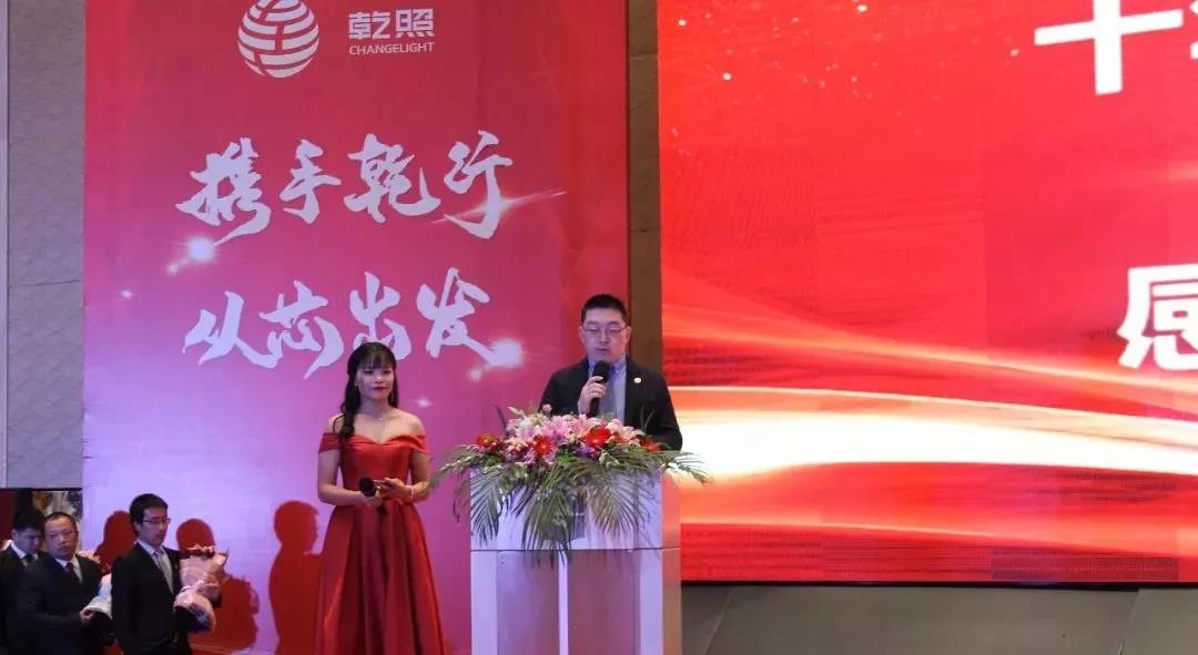 2019年1月25日,揚(yáng)州乾照光電“攜手乾行,從芯出發(fā)”10周年慶暨尾牙晚宴在揚(yáng)州香格里拉大酒店落下帷幕。乾照光電董事長(zhǎng)金章育,總裁蔡海防,公司全體高管以及揚(yáng)州乾照光電員工共1100余人參加。乾照光電創(chuàng)始人、原董事長(zhǎng)鄧電明,以及部分供應(yīng)商代表等嘉賓出席。