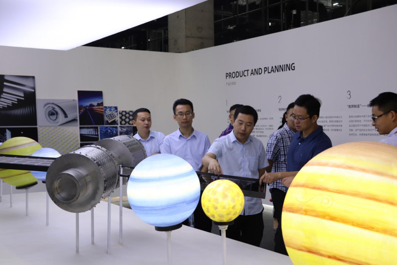 考察組一行來到公司展廳,工作人員介紹了公司的企業(yè)文化、項目的建設(shè)規(guī)劃布局以及LED芯片的應(yīng)用領(lǐng)域。劉兆就公司的產(chǎn)品特點,特別是自主研發(fā)的三大高新技術(shù)產(chǎn)品做了專業(yè)的講解。朱局長針對公司在航空航天領(lǐng)域應(yīng)用的砷化鎵太陽能電池產(chǎn)品的技術(shù)應(yīng)用進行了探討與交流。