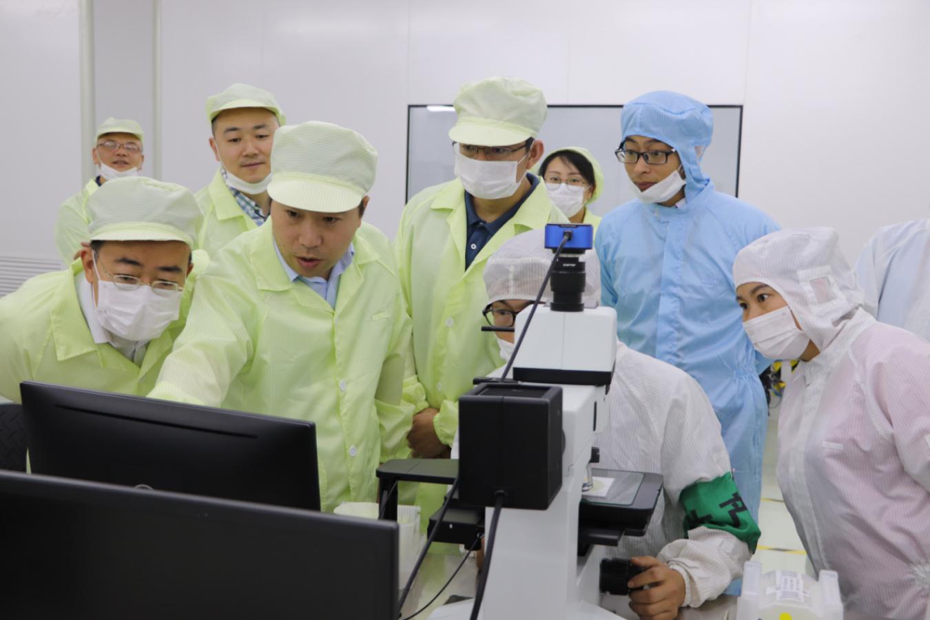隨后,考察組一行前往生產(chǎn)車間進行參觀,朱局長仔細觀摩了藍綠芯片的生產(chǎn)制作流程和芯片的質(zhì)檢工作程序,對公司的發(fā)展現(xiàn)狀表示了充分的肯定。