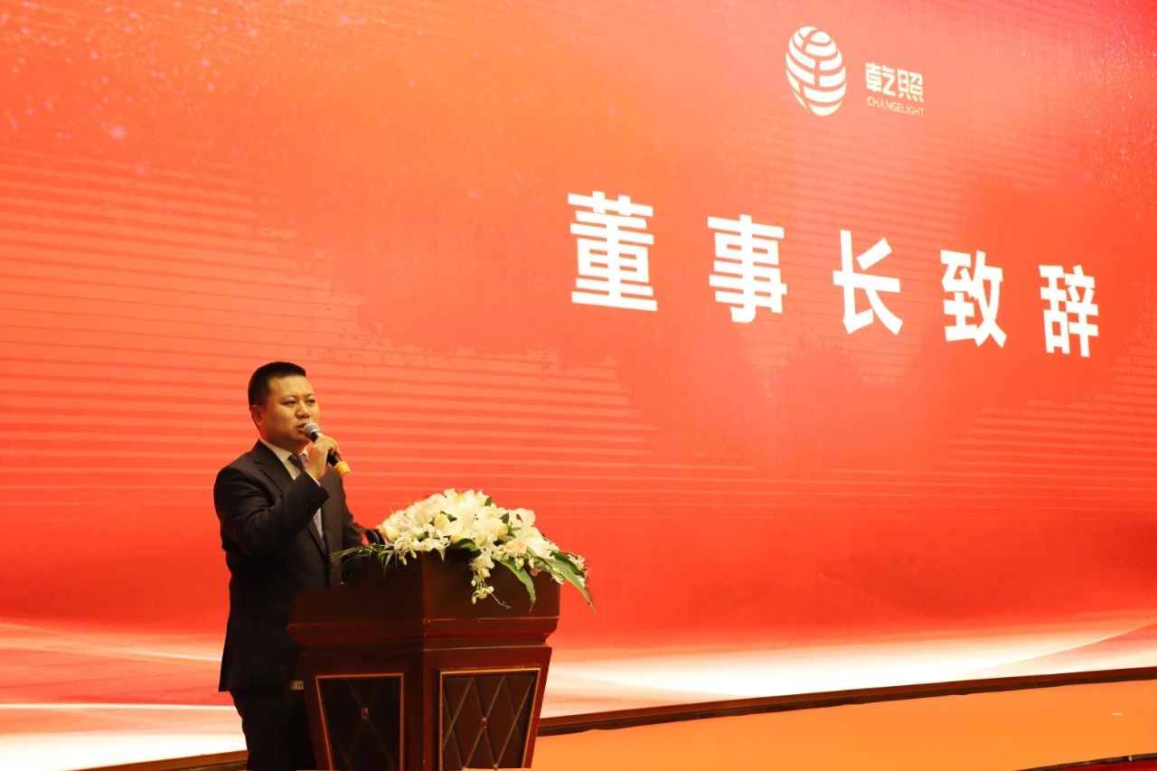 表彰結(jié)束,董事長金章育,總裁蔡海防帶領(lǐng)著公司經(jīng)理層以上管理人員,面對(duì)全體員工莊嚴(yán)宣誓。隨后,金章育董事長進(jìn)行致辭發(fā)言,他以“一心”、“砥礪”、“同袍”三個(gè)關(guān)鍵詞完美詮釋了本次尾牙的主題。他希望全體乾照人都能夠理解與踐行“同袍一心,砥礪前行”,鑄鐵軍,展鴻路。最后,股東代表三盛資本總裁王建輝先生作嘉賓致辭,他回憶了自身也曾經(jīng)歷過的艱難時(shí)期,表示寒冬并不可怕,眾志成城,則為崛起之勢,看好乾照的未來。