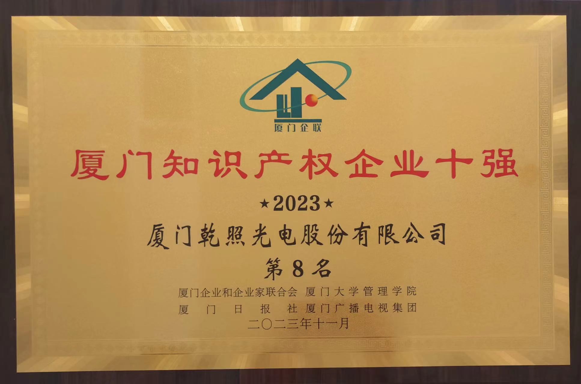 為了進一步提升整個社會的知識產(chǎn)權(quán)意識及能力水平,為廈門市開展國家知識產(chǎn)權(quán)強市建設(shè)示范工作發(fā)揮有效的推動作用,今年廈門企業(yè)和企業(yè)家聯(lián)合會攜手廈門市知識產(chǎn)權(quán)協(xié)會,首次重磅推出“2023廈門知識產(chǎn)權(quán)企業(yè)十強”榜單排序活動。乾照光電從眾多申報企業(yè)中脫穎而出,榮獲“廈門知識產(chǎn)權(quán)企業(yè)十強”稱號。