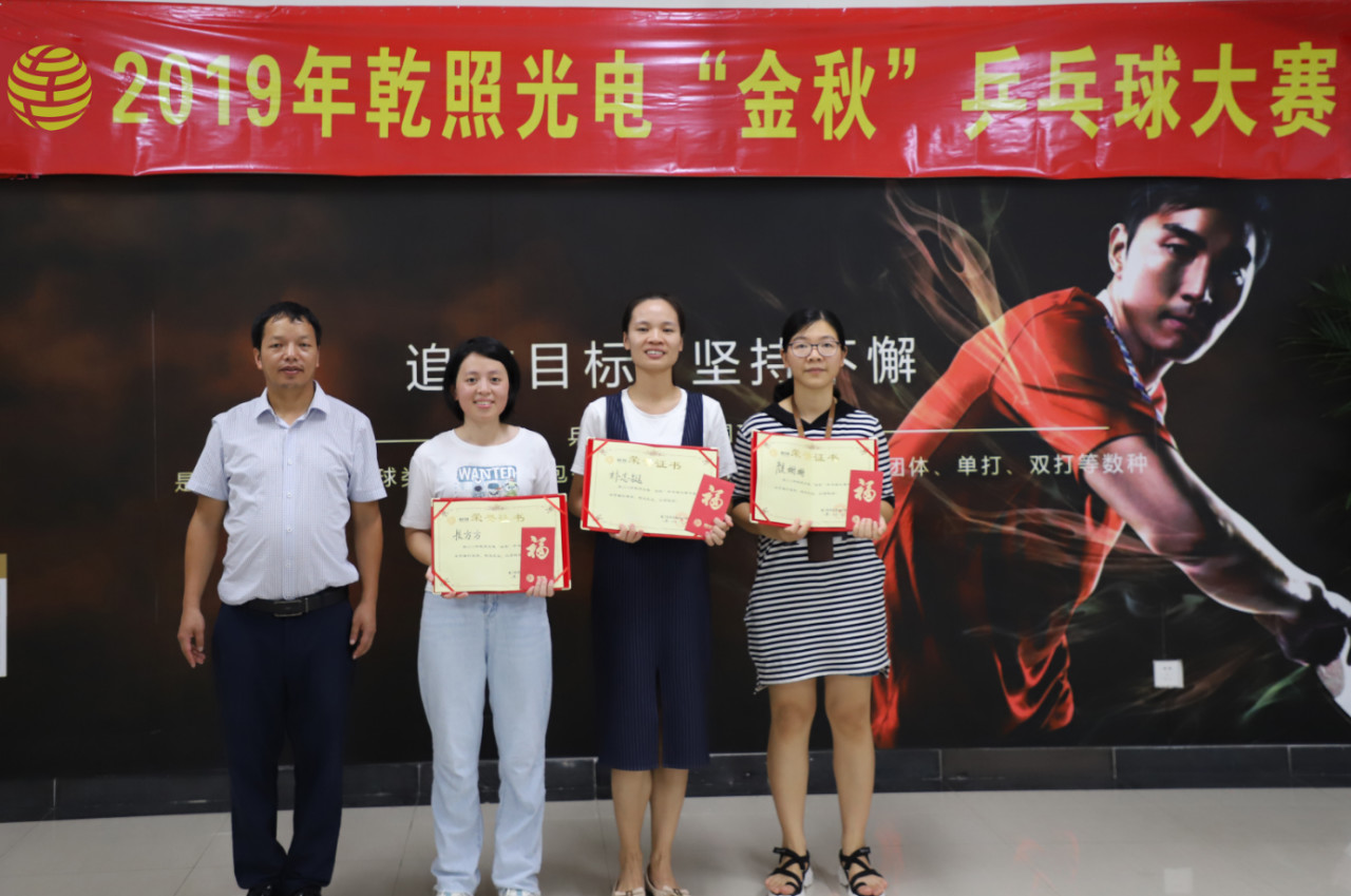 8月19日—26日,乾照光電乒乓球社舉辦了2019年乒乓球大賽。經(jīng)過海選賽、復(fù)賽、半決賽和決賽的激烈角逐,最終品管部周耀東、芯片制造部侯福山、總裁辦解鵬越、整合部林鋒杰分別獲得男子單打冠、亞、季軍和第四名;品管部顏姍姍、未來顯示研究院段方方和銷售管理部林志鋌分別獲得女子單打冠、亞、季軍;品管部周耀東、技術(shù)中心陳婉菁和總裁辦解鵬越、未來顯示研究院馮妍雪分別獲得男女混雙冠軍和亞軍。